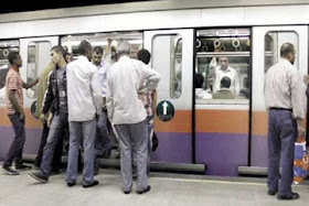 ام حوالى 20 شخصا صباح "الأربعاء" بالنزول الى محطة مترو أنفاق "السادات" بميدان رمسيس والقاء الحجارة على القضبان فى محاولة لايقاف حركة المترو ، مما تسبب فى كسر زجاج 4 ابواب و4 شبابيك باحد القطارات وتأخر حركة سيرالقطارات.وتمكنت الخدمات الأمنية المعينة بمحطة مترو انفاق السادات من التصدى للمذكورين واجبارهم على الخروج من المحطة ، دون ان يؤثر ذلك على حركة المترو.ويقوم المذكورون حاليا بالوقوف خارج المحطة ومحاولة منع المواطنين من النزول الى المحطة لاستخدام المترو.